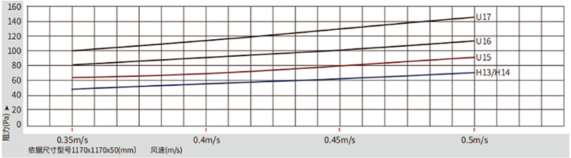■ 99.95%@MPPS(H13)、99.995%@MPPS(H14)、99.9995%@MPPS(U15)、99.99995%@MPPS(U16)、99.999995%@MPPS(U17)